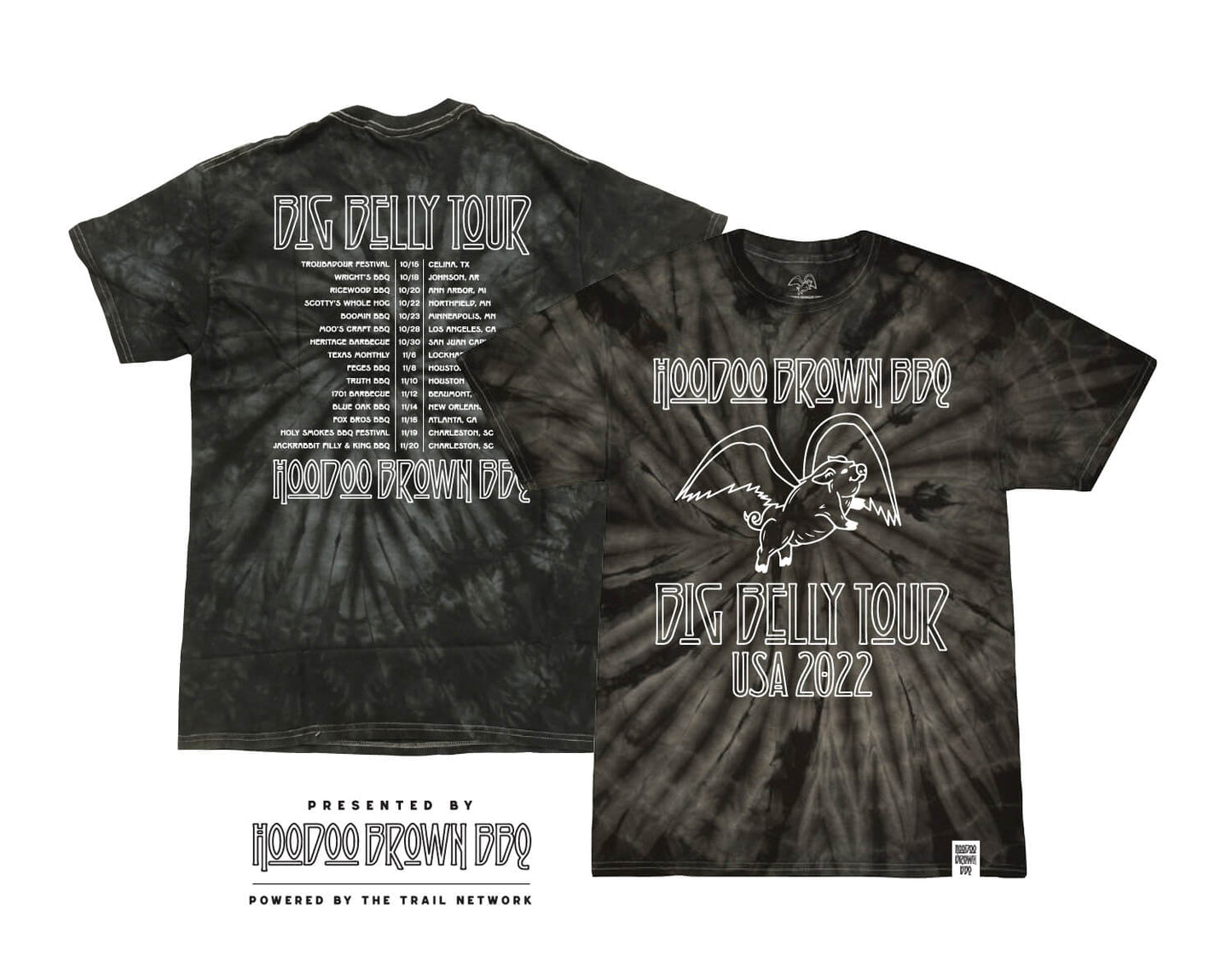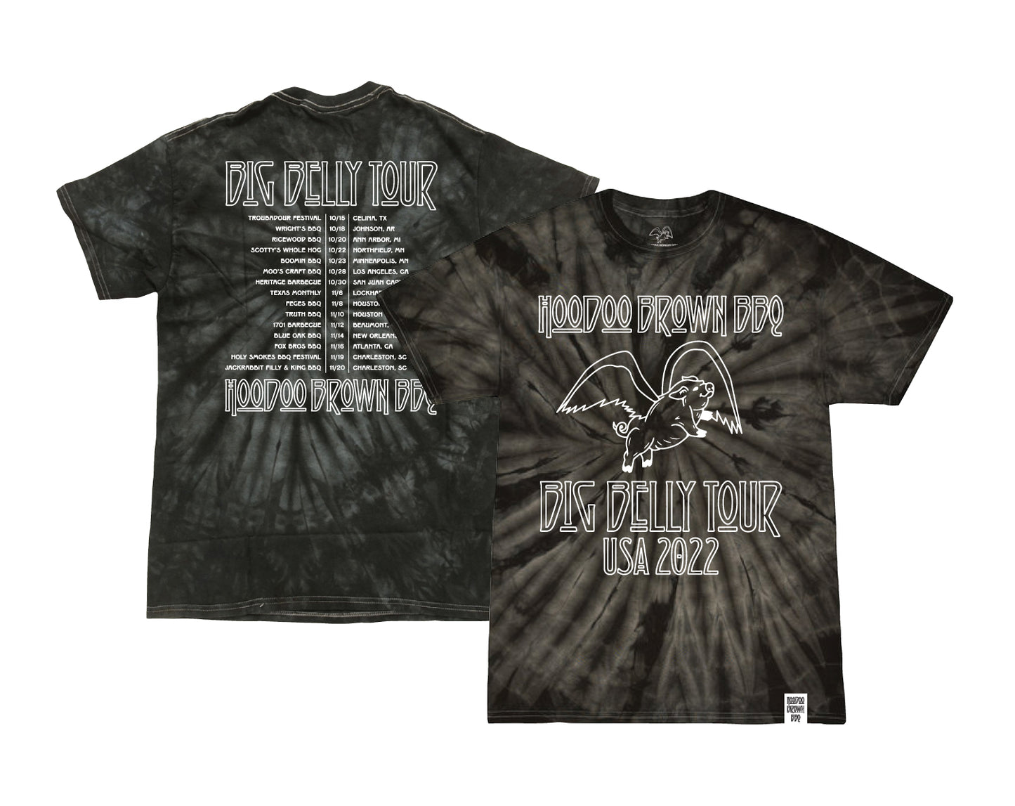 100% Cotton Tie Dye Black Big Belly Tour 2022 Official Tee Shirt